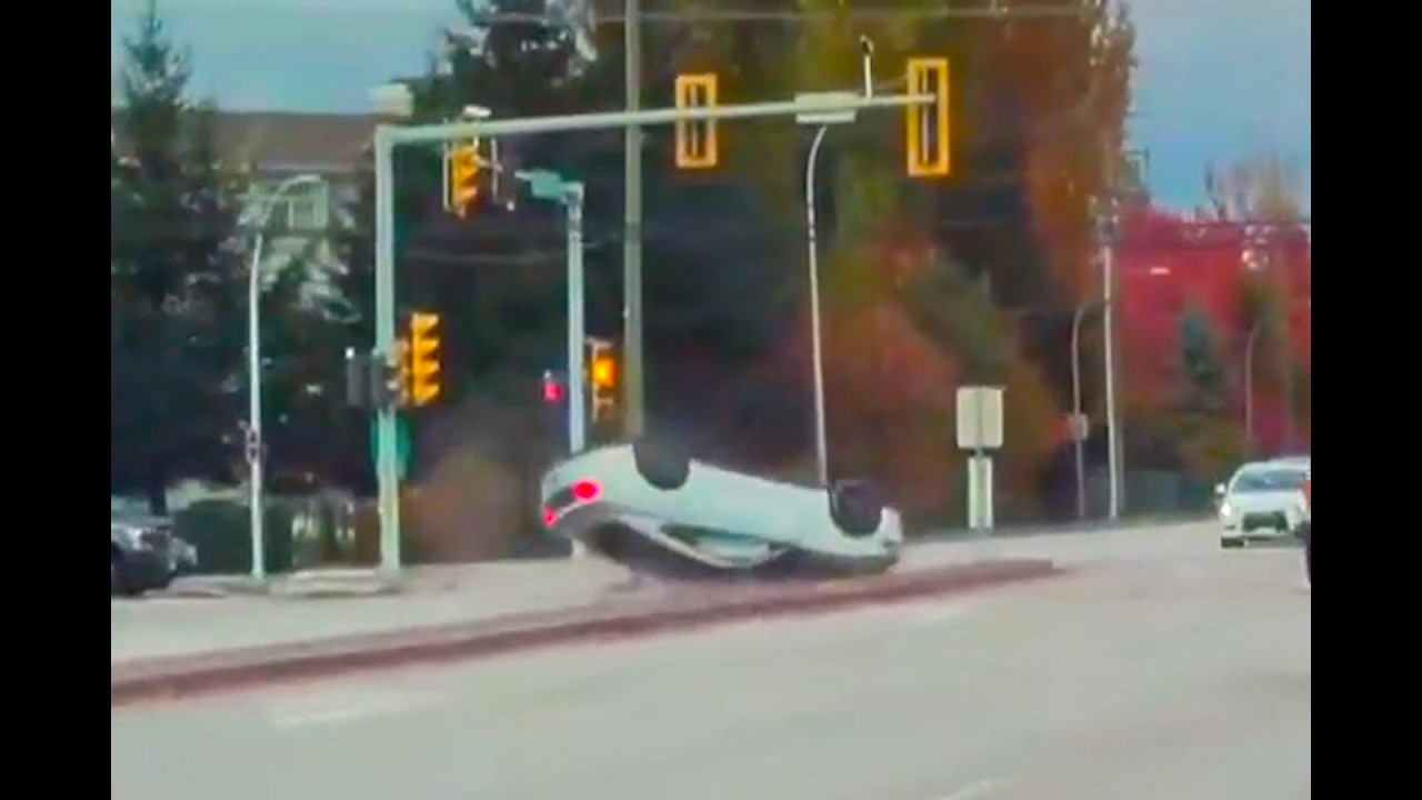 بالفيديو..لحظة انقلاب سيارة فارهة بعد تلقيها صدمة من سيارة لم تحترم الاشارات الضوئية