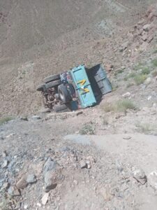 حادثة سير خطيرة شاحنة تهوي بسائقها في منحدر سحيق
