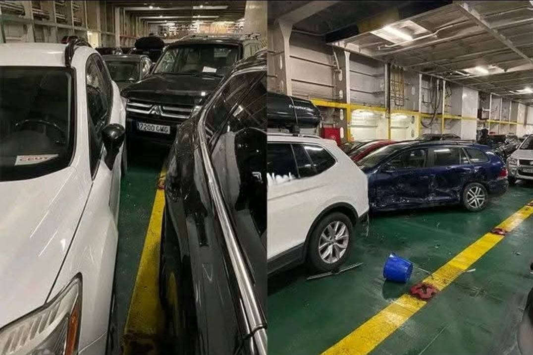 وكشفت معطيات متطابقة أن قوة الرياح وعلو الأمواج أفقدا الباخرة توازنها أثناء الإبحار، وهو ما تسبّب في تصادم عنيف بين السيارات المركونة بالطابق السفلي، مخلفًا أضرارًا مادية جسيمة بعدد من العربات، كما تُظهر ذلك الصور المتداولة للحادث.